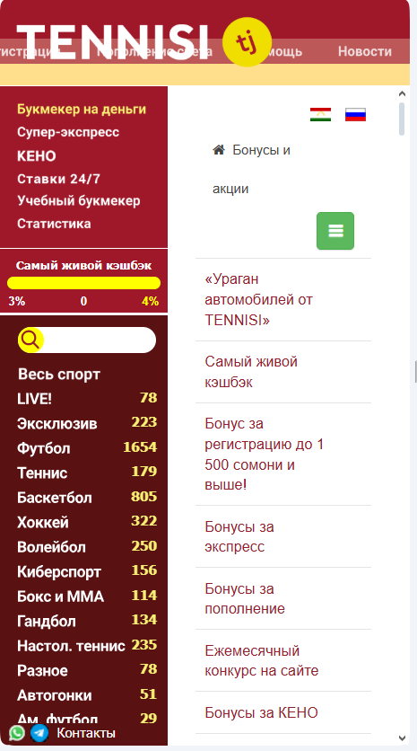 Tennisi дар Тоҷикистон — ҳама чиз дар бораи бонусҳо ва имкониятҳои ширкат